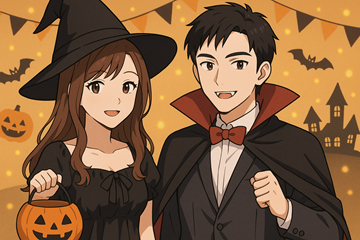 ハロウィンのコスプレ衣装、女性は男性に、男性は女性にそれぞれ衣装を選んでもらう。